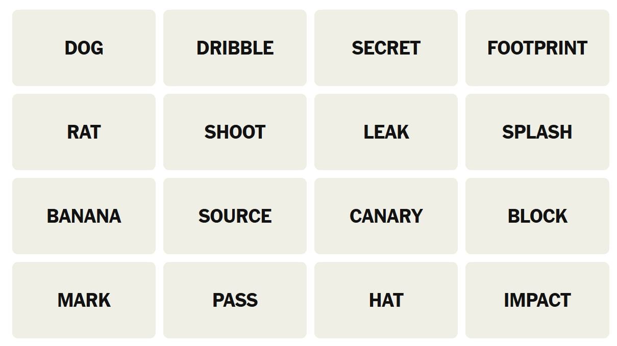 - Hint 2: FOOTPRINT and SPLASH are in the same group.