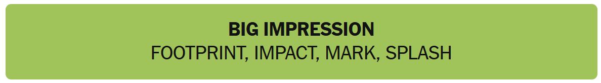 - BIG IMPRESSION – FOOTPRINT, IMPACT, MARK, SPLASH