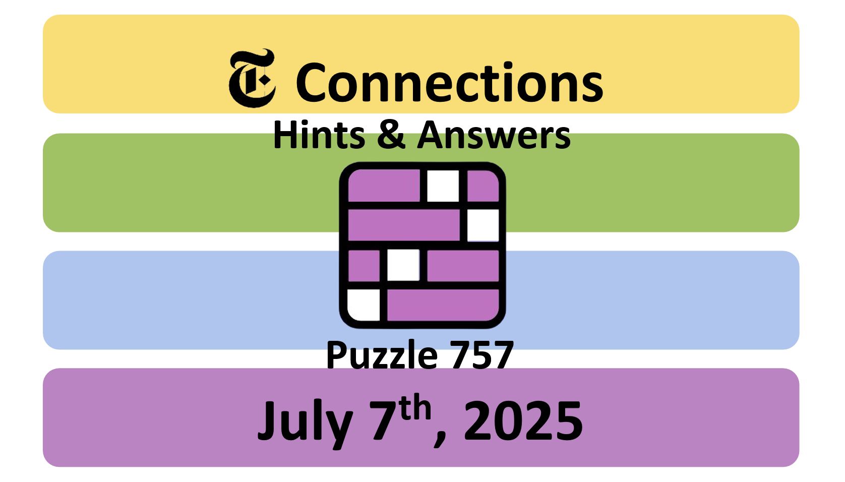 Here are the answers for the New York Times (NYT) Connections puzzle #757 today, released on July 7th, 2025, and some hints to help you solve them.