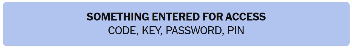- SOMETHING ENTERED FOR ACCESS – CODE, KEY, PASSWORD, PIN