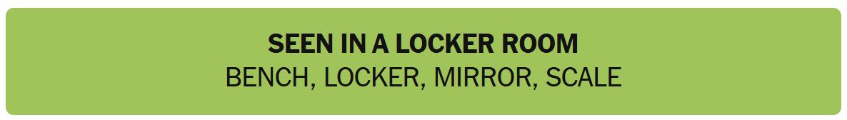- SEEN IN A LOCKER ROOM – BENCH, LOCKER, MIRROR, SCALE