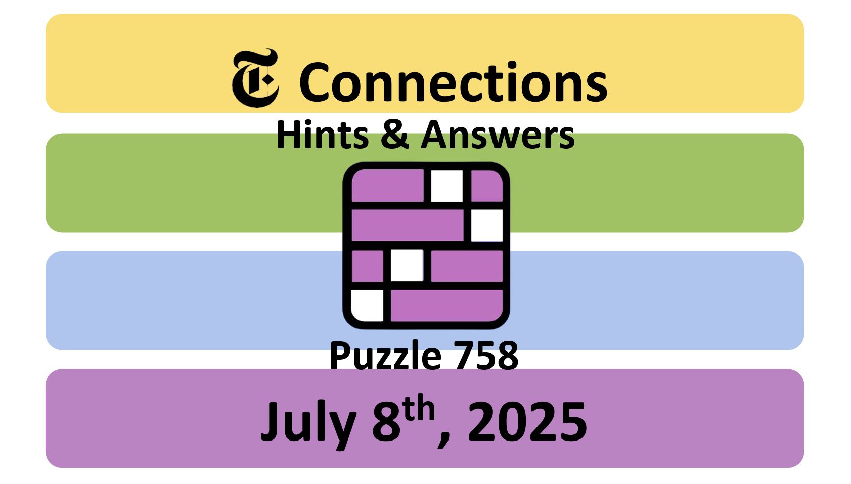 Here are the answers for the New York Times (NYT) Connections puzzle #758 today, released on July 8th, 2025, and some hints to help you solve them.