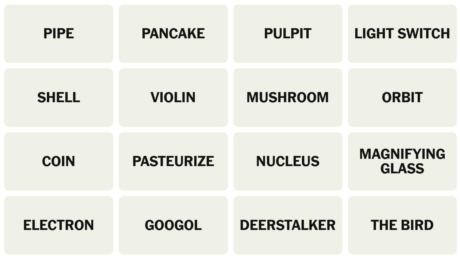 - Hint 2: COIN and PANCAKE are in the same group.