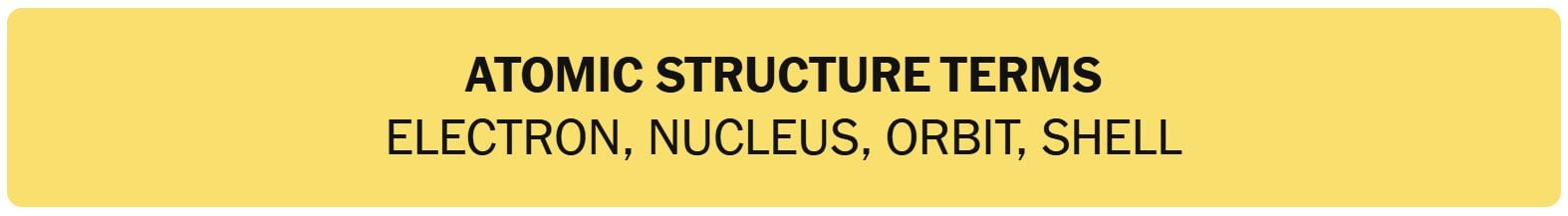 - ATOMIC STRUCTURE TERMS – ELECTRON, NUCLEUS, ORBIT, SHELL