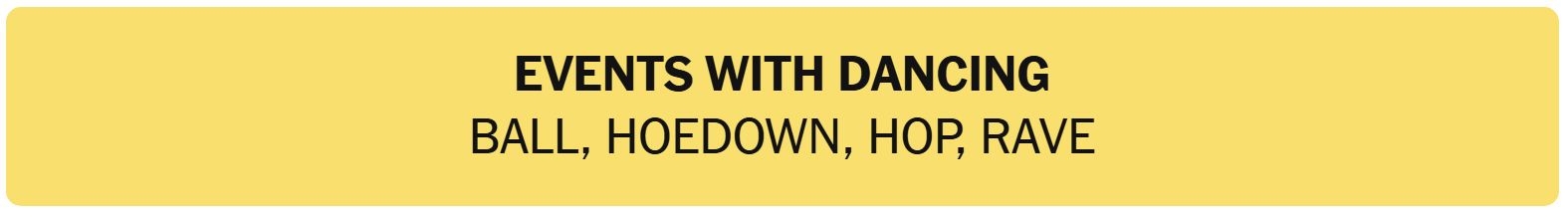 - EVENTS WITH DANCING – BALL, HOEDOWN, HOP, RAVE