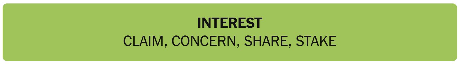 - INTEREST – CLAIM, CONCERN, SHARE, STAKE