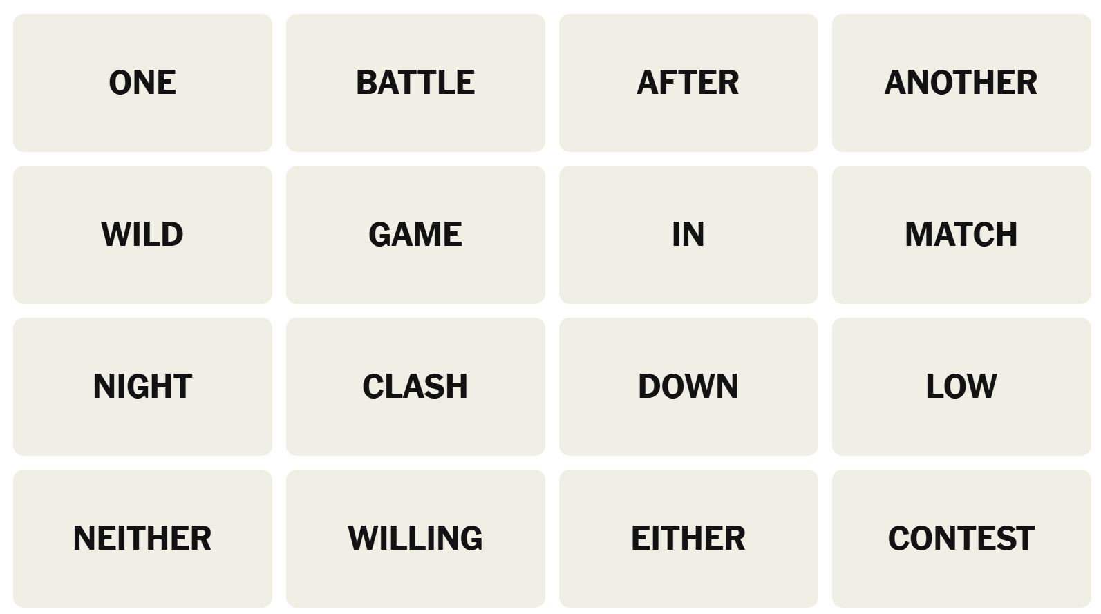 There are sixteen words for the Connection puzzles, which are: