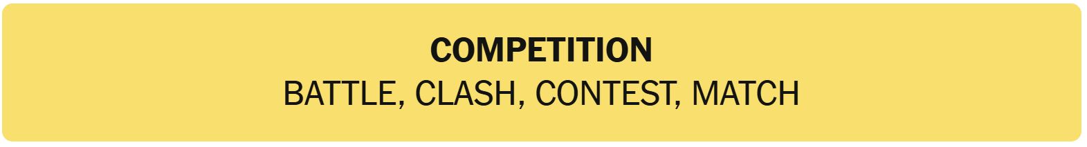 - COMPETITION – BATTLE, CLASH, CONTEST, MATCH