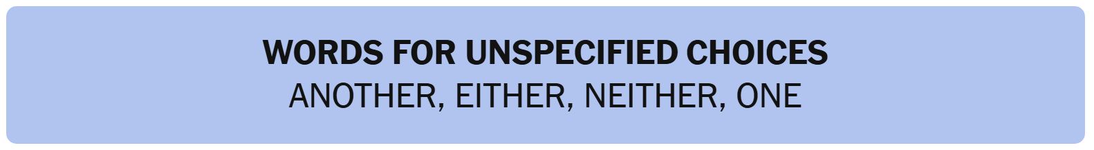 - WORDS FOR UNSPECIFIED CHOICES – ANOTHER, EITHER, NEITHER, ONE