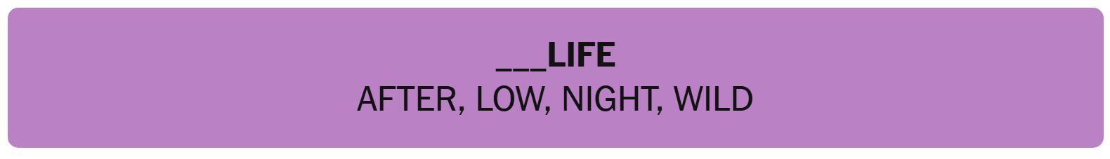 - ____ LIFE – AFTER, LOW, NIGHT, WILD