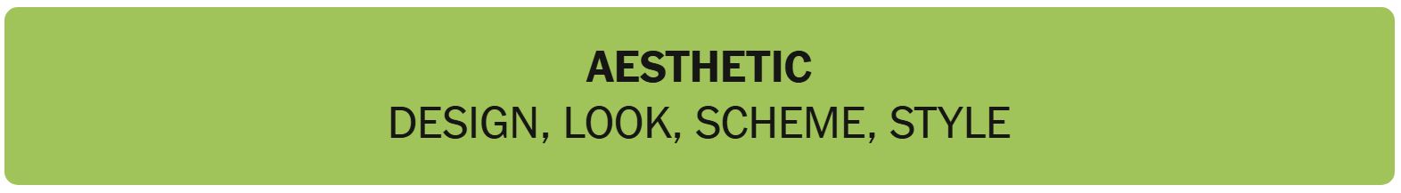 - AESTHETIC – DESIGN, LOOK, SCHEME, STYLE