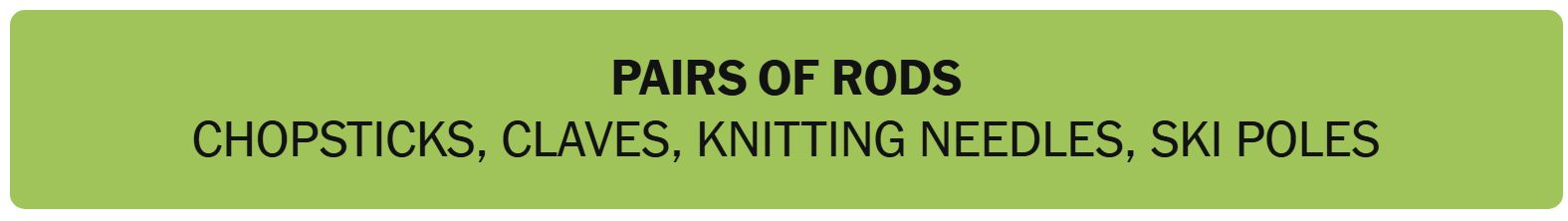 - PAIRS OF RODS – CHOPSTICKS, CLAVES, KNITTING NEEDLES, SKI POLES