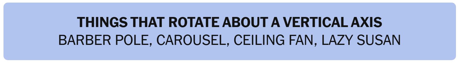 - THINGS THAT ROTATE ABOUT A VERTICAL AXIS – BARBER POLE, CAROUSEL, CEILING FAN, LAZY SUSAN