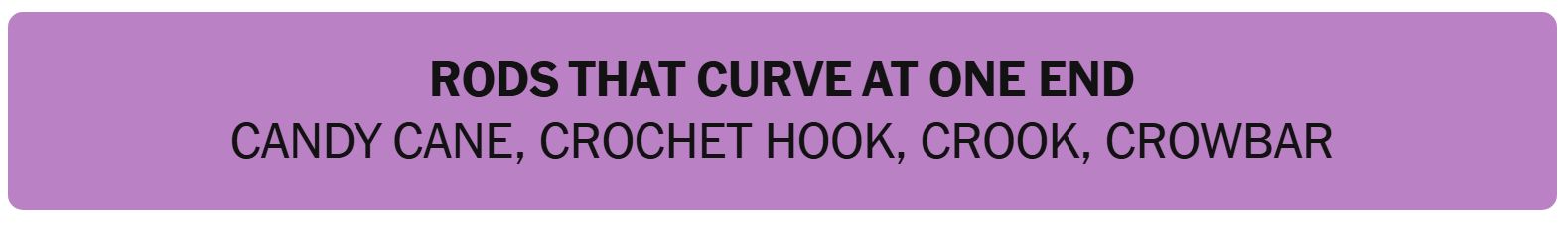 - RODS THAT CURVE AT ONE END – CANDY CANE, CROCHET HOOK, CROOK, CROWBAR