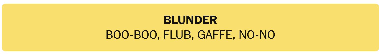- BLUNDER – BOO-BOO, FLUB, GAFFE, NO-NO