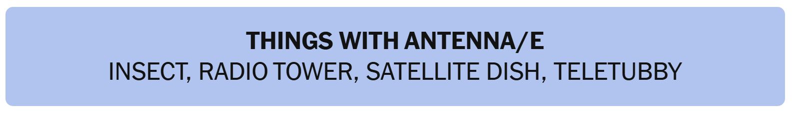 - THINGS WITH ANTENNA/E – INSECT, RADIO TOWER, SATELLITE DISH, TELETUBBY