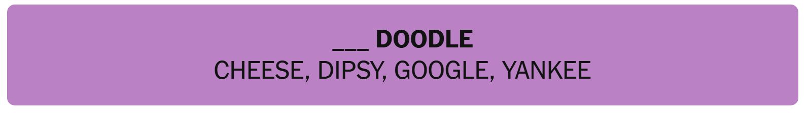 - ___ DOODLE – CHEESE, DIPSY, GOOGLE, YANKEE