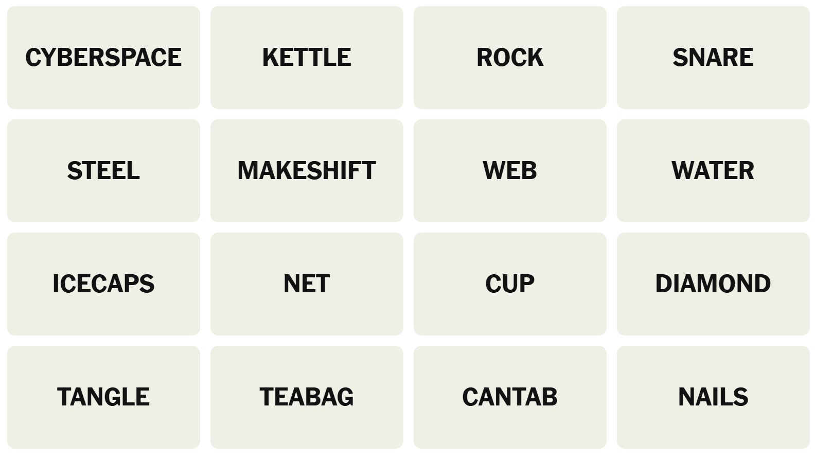 There are sixteen words for the Connection puzzles, which are: