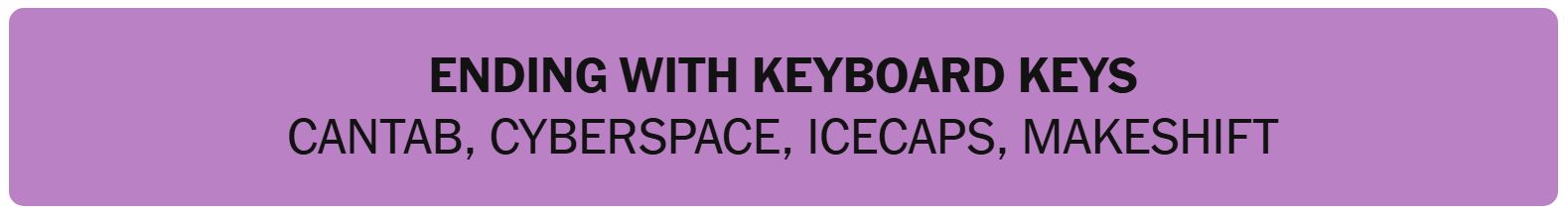 - ENDING WITH KEYBOARD KEYS – CANTAB, CYBERSPACE, ICECAPS, MAKESHIFT
