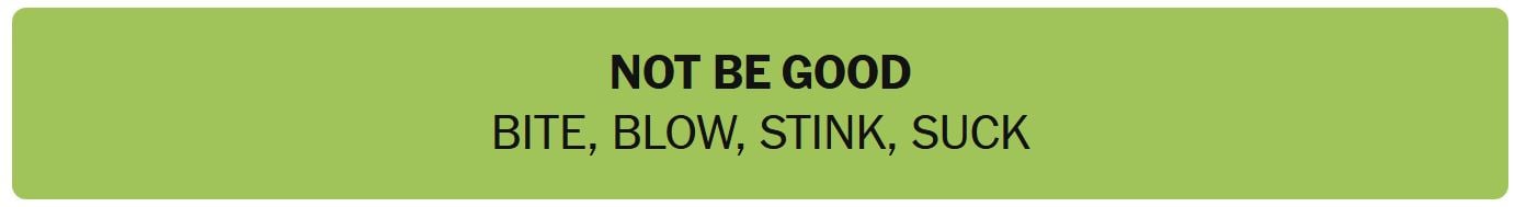 - NOT BE GOOD – BITE, BLOW, STINK, SUCK