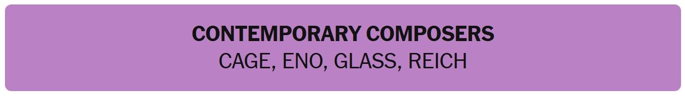 - CONTEMPORARY COMPOSERS – CAGE, ENO, GLASS, REICH