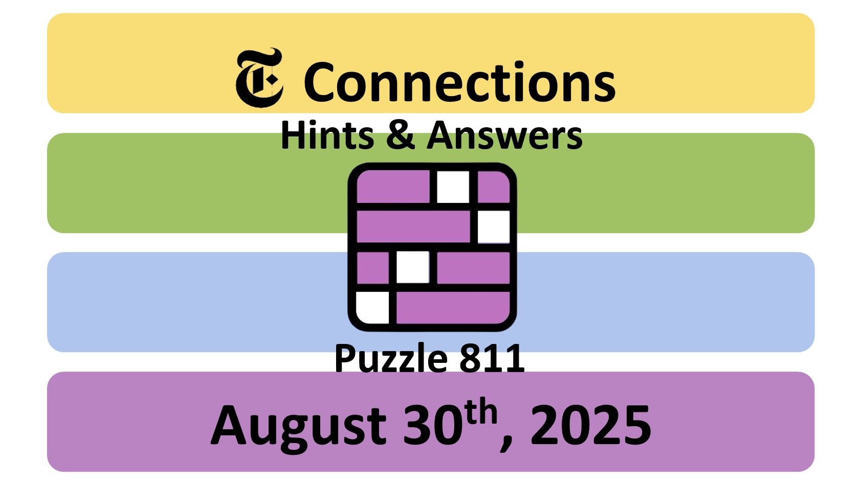 Here are the answers for the New York Times (NYT) Connections puzzle #811 today, released on August 30th, 2025, and some hints to help you solve them.