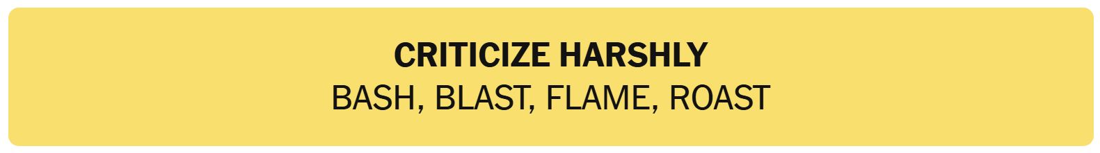 • CRITICIZE HARSHLY – BASH, BLAST, FLAME, ROAST