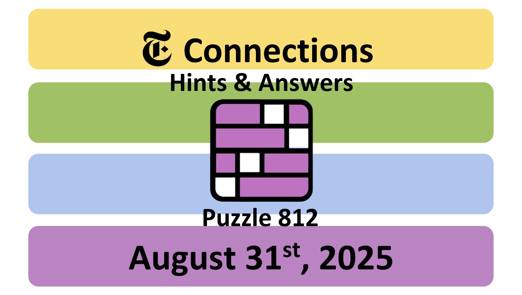Here are the answers for the New York Times (NYT) Connections puzzle #812 today, released on August 31st, 2025, and some hints to help you solve them.