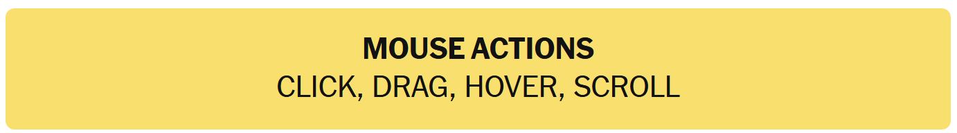 - MOUSE ACTIONS – CLICK, DRAG, HOVER, SCROLL