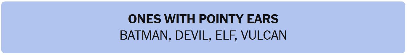 - ONES WITH POINTY EARS – BATMAN, DEVIL, ELF, VULCAN