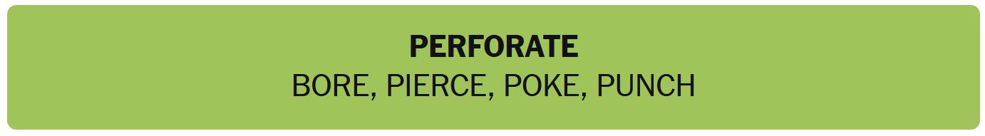 - PERFORATE – BORE, PIERCE, POKE, PUNCH