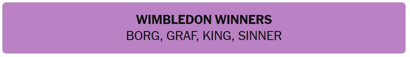- WIMBLEDON WINNERS – BORG, GRAF, KING, SINNER