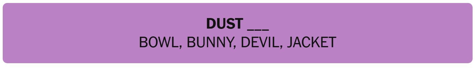 - DUST ___ – BOWL, BUNNY, DEVIL, JACKET