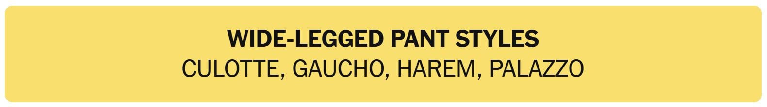 - WIDE-LEGGED PANT STYLES – CULOTTE, GAUCHO, HAREN, PALAZZO