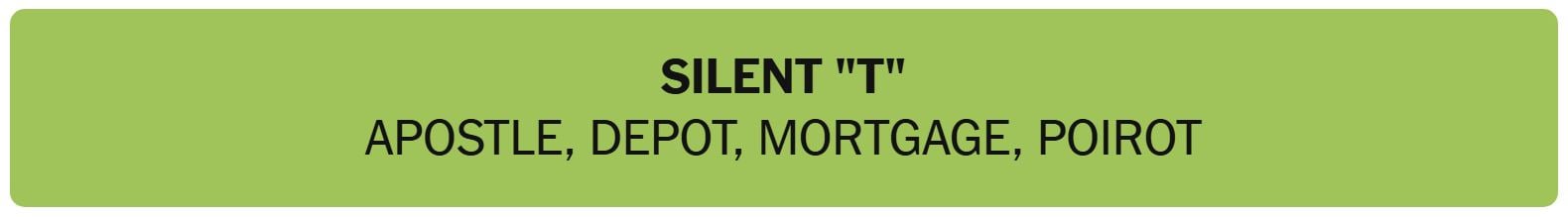 - SILENT “T” – APOSTLE, DEPOT, MORTGAGE, POIROT