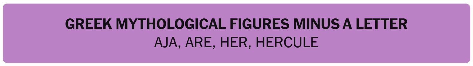 - GREEK MYTHOLOGICAL FIGURES MINUS A LETTER – AJA, ARE, HER, HERCULE