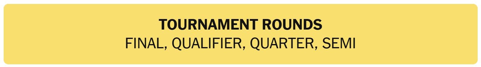 - TOURNAMENT ROUNDS – FINAL, QUALIFIER, QUARTER, SEMI