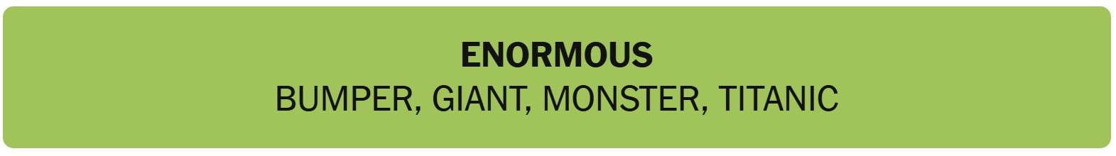 - ENORMOUS – BUMPER, GIANT, MONSTER, TITANIC