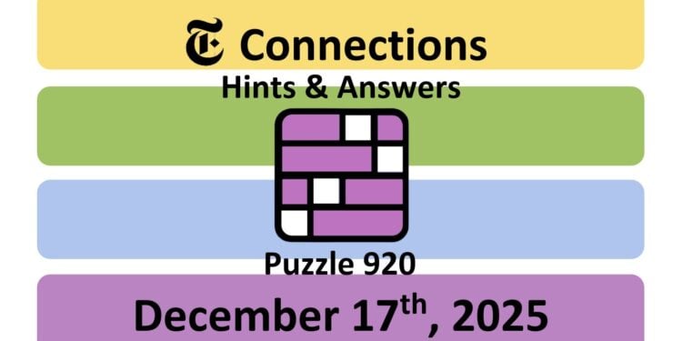 Here are the answers for the NYT Connections puzzle #920 today, released on December 17th, 2025, and some hints to help you solve them.