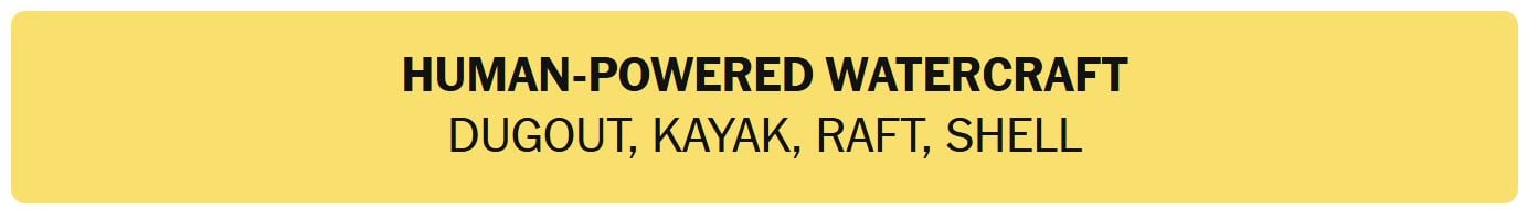 - HUMAN-POWERED WATERCRAFT – DUGOUT, KAYAK, RAFT, SHELL