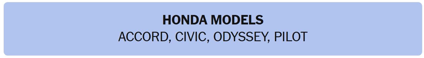 - HONDA MODELS – ACCORD, CIVIC, ODYSSEY, PILOT