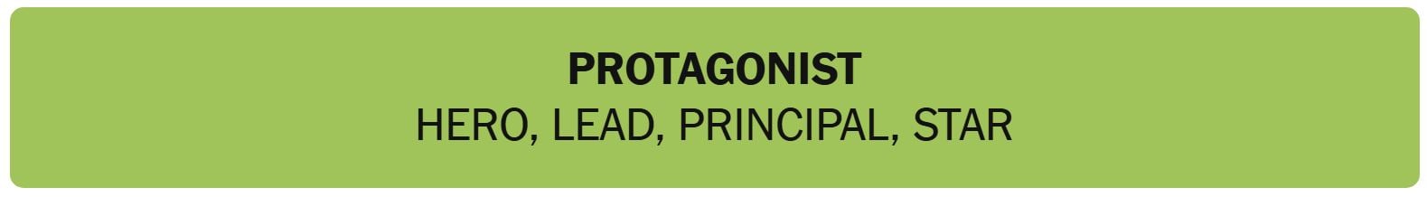 - PROTAGONIST – HERO, LEAD, PRINCIPAL, STAR
