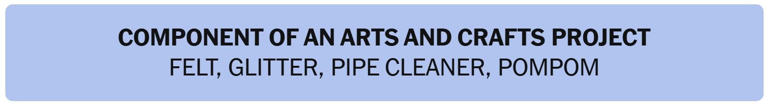 - COMPONENT OF AN ARTS AND CRAFTS PROJECT – FELT, GLITTER, PIPE CLEANER, POMPOM
