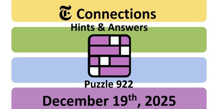 Here are the answers for the NYT Connections puzzle #922 today, released on December 19th, 2025, and some hints to help you solve them.
