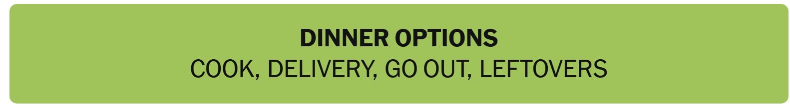 - DINNER OPTIONS – COOK, DELIVERY, GO OUT, LEFTOVERS