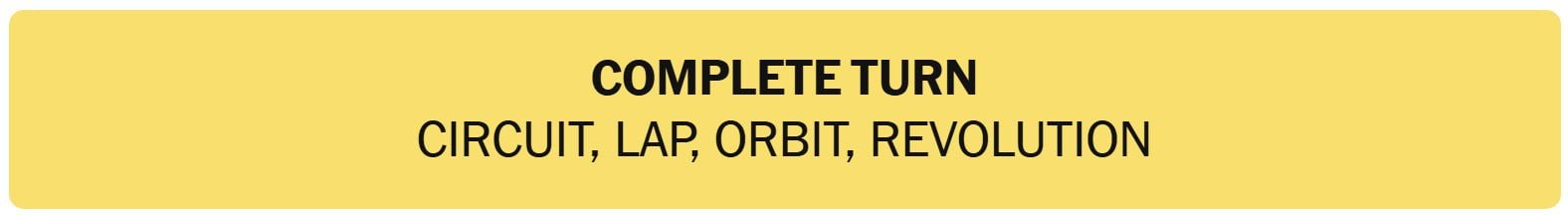 - COMPLETE TURN – CIRCUIT, LAP, ORBIT, REVOLUTION