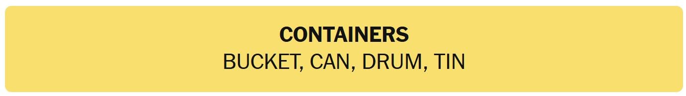 • CONTAINERS – BUCKET, CAN, DRUM, TIN