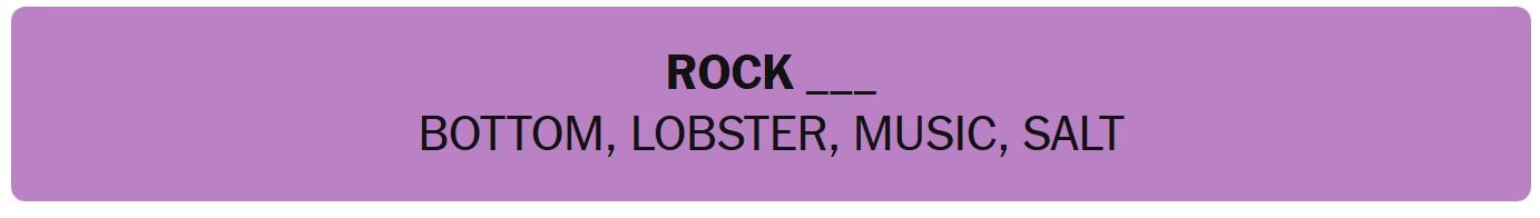 • ROCK ___ – BOTTOM, LOBSTER, MUSIC, SALT