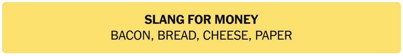 - SLANG FOR MONEY – BACON, BREAD, CHEESE, PAPER