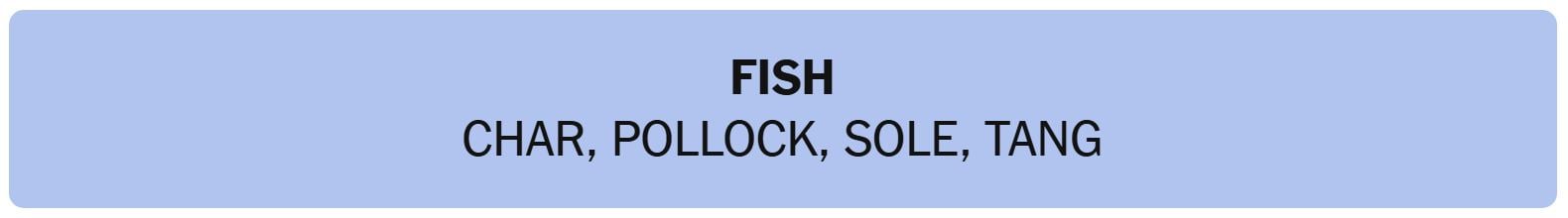 - FISH – CHAR, POLLOCK, SOLE, TANG